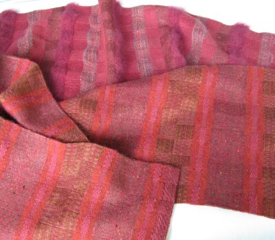 ...ist heutzutage ein weit verbreitetes Phänomen. Da werden kratzige Fasern als besonders unangenehm empfunden. Umso wichtiger ist es, als Handweberin auf hautschmeichelnde und nicht reizende Garne zu achten. Besonders, wenn es um Schals geht, die ja nah am Hals getragen werden. Eines meiner Lieblingsgarne ist daher Alpaka. Es ist sehr glatt und wird von mir selbst (auch hautempfindlich) als sehr angenehm empfunden. Besonders kuschelig weich ist Baby-Alpaka, das übrigens nicht so heißt, weil es von Alpaka-Babys stammt, sondern weil es so fein ist. Eine eng anliegende Schuppenstruktur verleiht den Alpaka-Fasern Glanz und sorgt dafür, dass sie sich seidig anfühlen. Zudem enthalten Alpakafasern nach Züchterangaben fast kein Wollfett (Lanolin), das für Allergiker problematisch werden kann, weshalb sie oft für Allergiker empfohlen werden.